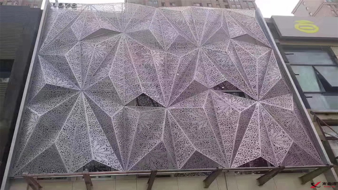 6、安裝施工方便快捷。鋁板在工廠成型,施工現(xiàn)場不需裁切,固定在骨架上即可。